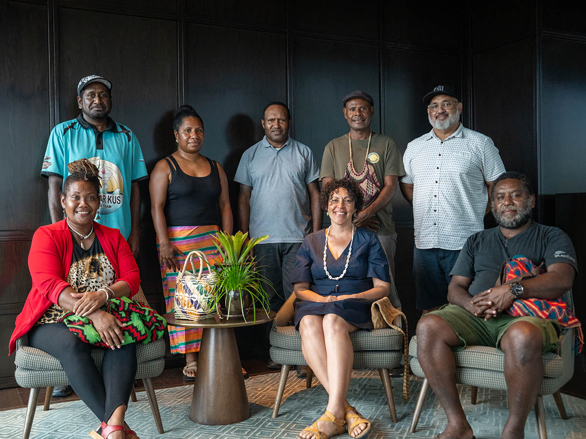 Aunty Sana Balai is a respected Bougainville Elder from Buka Island, Papua New Guinea, living in Australia since 1990. A curator, writer, and researcher, she specialises in Pacific, Aboriginal, and Torres Strait Islander collections, mentors diaspora artists, and has curated major exhibitions for NGV and QAGOMA, with cultural integrity leadership.